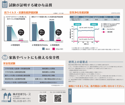 この(株)リレース社製造の光触媒溶液「キレースコート・テン」は